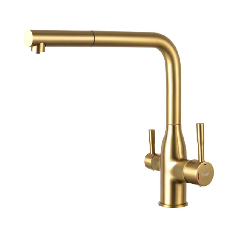 Вытяжной смеситель для кухни с фильтром Frap H96 F4396-33 золотой сатин