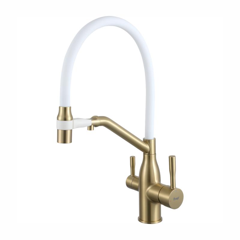 Смеситель для кухни с фильтром Frap H97 F4397-3 золотой сатин